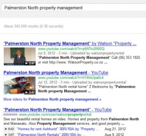Watson Property in New Zealand is one of our video optimization program clients. See the results for yourself. For the search above, these are the natural search results under the map. See the site is taking spot #1 on the first page. A company video holds spot #3. The YouTube ...